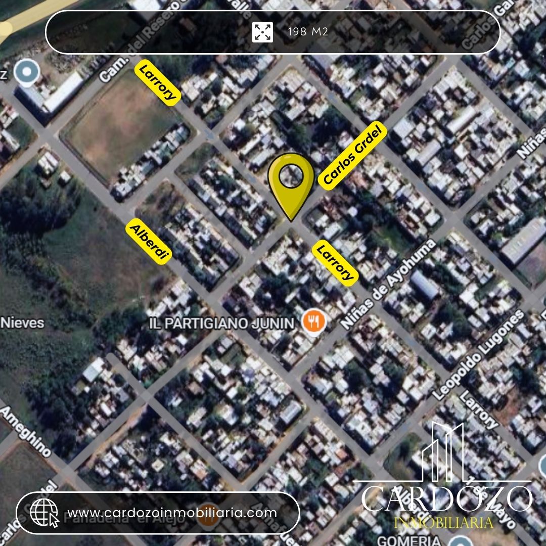 Sobre calle Carlos Gardel, a 1 cuadra de Alberdi y 200 metros de Ruta 188.