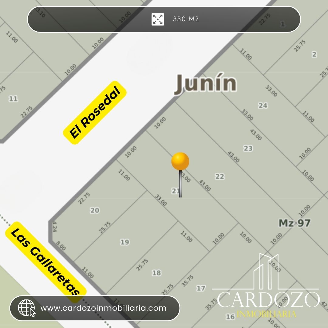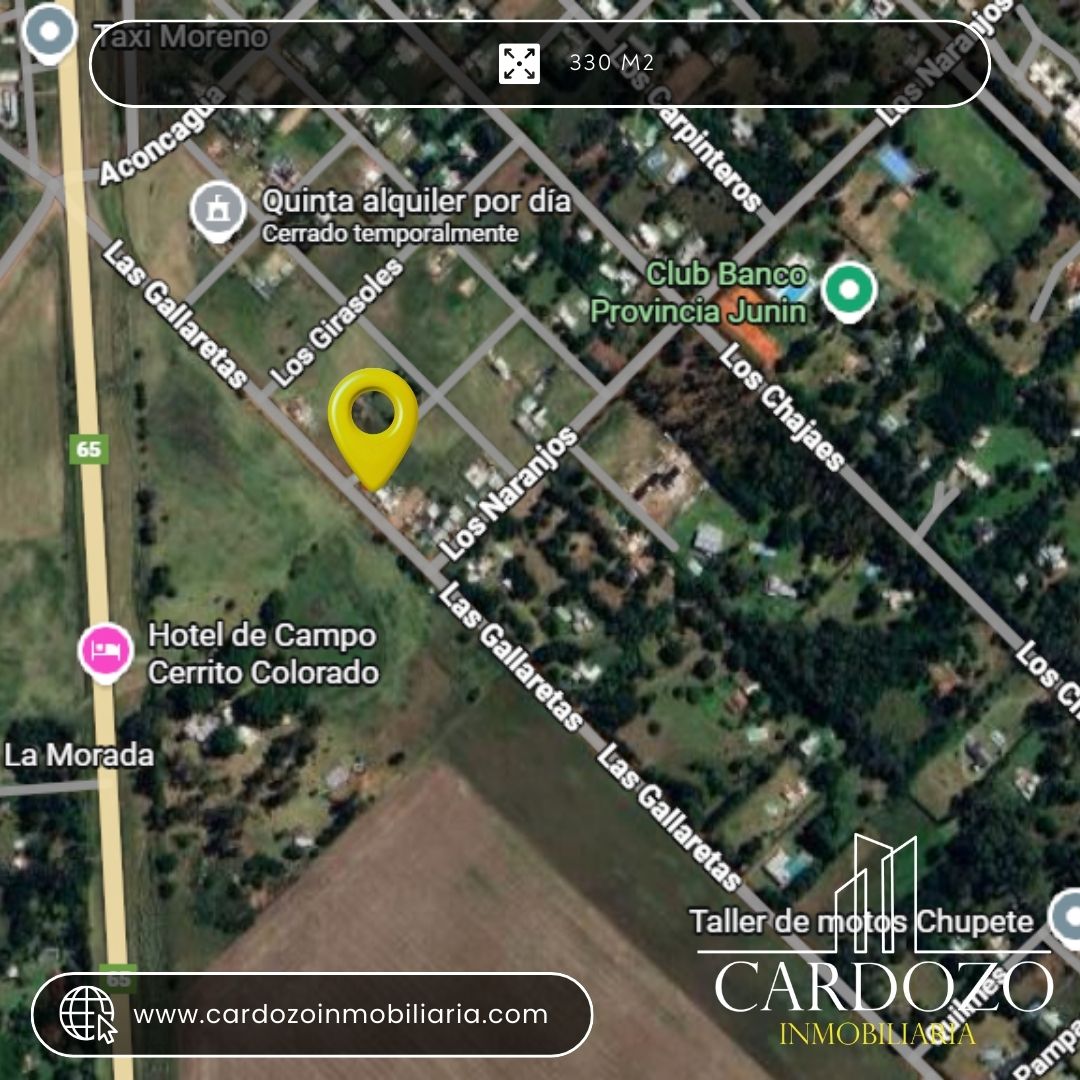 Terreno ideal para tu proyecto soñado en Cerrito Colorado 10 x 33 metros en una excelente ubicación, rodeado de naturaleza y tranquilidad. Ubicado en zona de quintas, sobre la calle El Rosedal entre Las Gallaretas y Los Naranjos, este terreno te ofrece un entorno verde y armonioso, perfecto para descansar o vivir lejos del ruido, pero a solo 200 metros de la RP 65, con excelente conectividad. Con servicio de electricidad disponible, listo para comenzar tu construcción sin complicaciones. Imagina tu casa de fin de semana, tu vivienda permanente o una inversión con alta demanda en una de las zonas con mayor crecimiento de Cerrito Colorado.